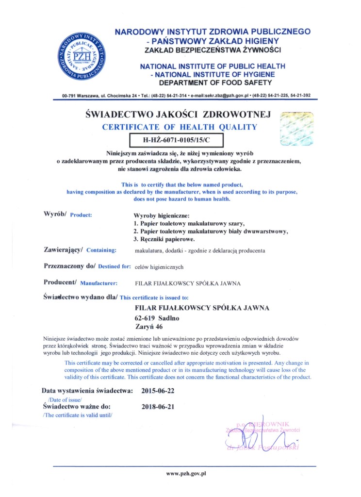FILAR Fijałkowski Spółka Komandytowa - przedsiębiorstwo rodzinne bazujące wyłącznie na polskim kapitale. Od ponad dwóch dekad specjalizuje się w produkcji papierów higienicznych w tamborach i innych wyrobów higienicznych. Rodzinny charakter firmy pozwala nieprzerwalnie prowadzić biznes od 30 lat. Wizję rozwoju zapoczątkował jej założyciel Andrzej Fijałkowski, a kolejne pokolenie wspólnie kształtuje jej profesjonalny i nowoczesny wizerunek.